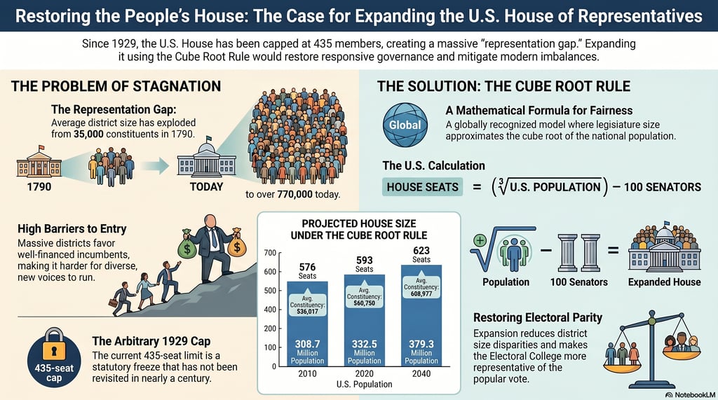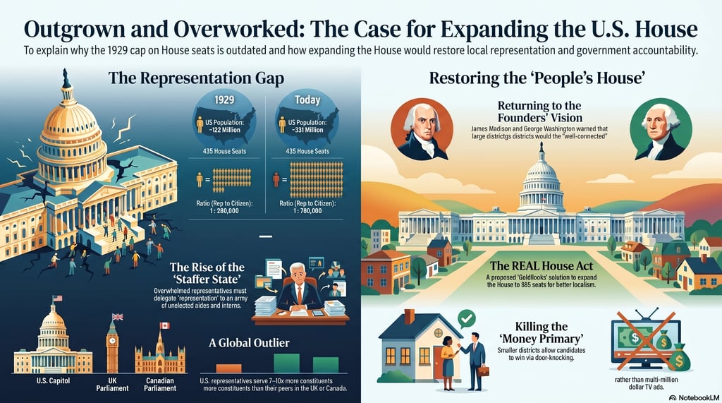 The 435-seat cap was a 100-year-old "quick fix" for a political argument from the era of silent movies and telegrams. We’re trying to run a 21st-century superpower on a 1920s engine, and it’s starting to stall out. We've outgrown the cap, and the tension is showing in our polarized politics, our "Staffer State," and our frustrated citizens who feel like no one in Washington is listening.